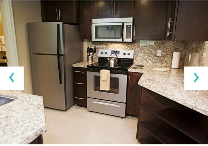 Our gourmet kitchens include quartz countertops and contemporary lighting.